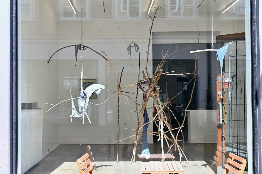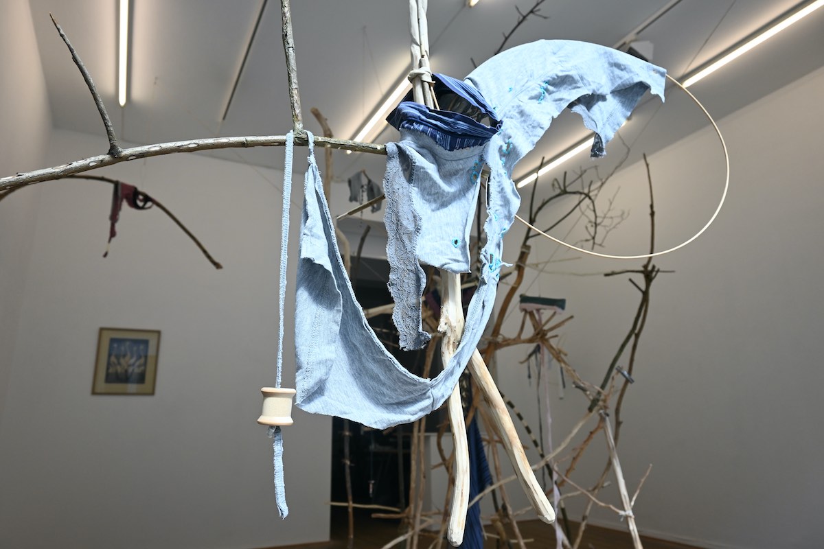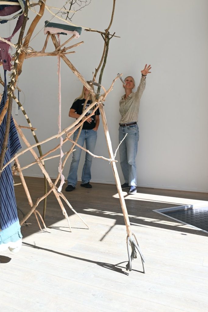 Installationen består av täljda träpinnar från konstnärernas egen trädgård och återvunna textila element från kläder i ett samspel mellan konstnärerna. Referenser till paradisfågelns anatomi med dess långa hals och näbb och skrud återkommer i installationen. En önskan om samspelet mellan människa, djur och natur som gemensamt bildar en helhet.